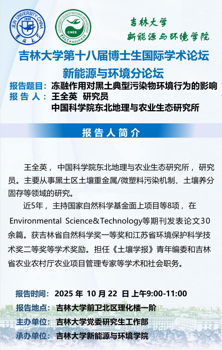 吉林大学第十八届博士生国际学术论坛——新能源与环境分论坛