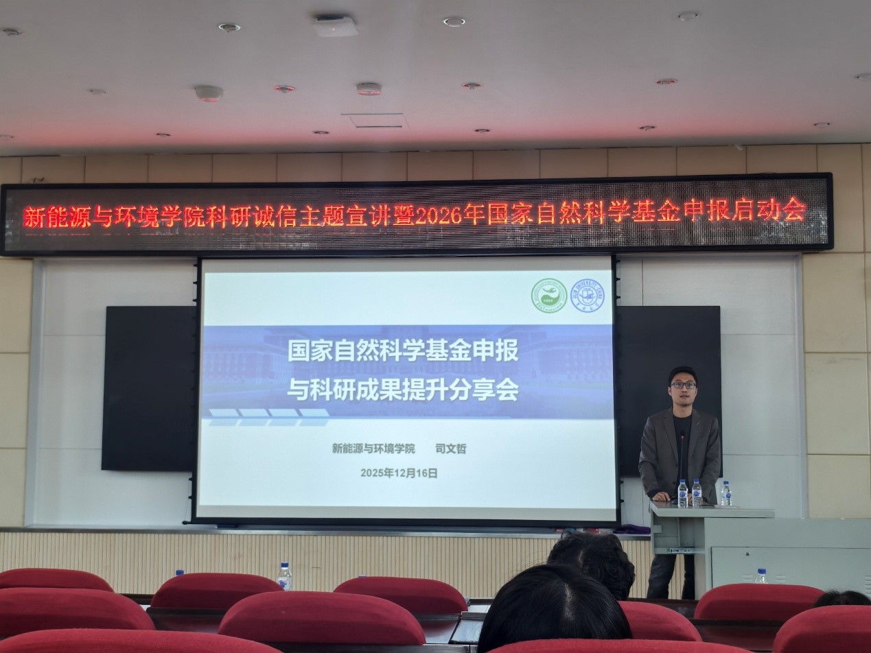 在前卫北区理化楼召开科研诚信主题宣讲会暨2026年度国家自然科学基金申报启动会。会议旨在强化学术规范、弘扬科学家精神,全面动员和部署新一年度基金申报工作,为提升学院科研创新能力凝聚共识、汇聚合力。院长董双石教授、学校科技管理办公室副主任吴昊,全院教师、在站博士后及博士研究生代表共同参会。会议由学院副院长张文静教授主持。
