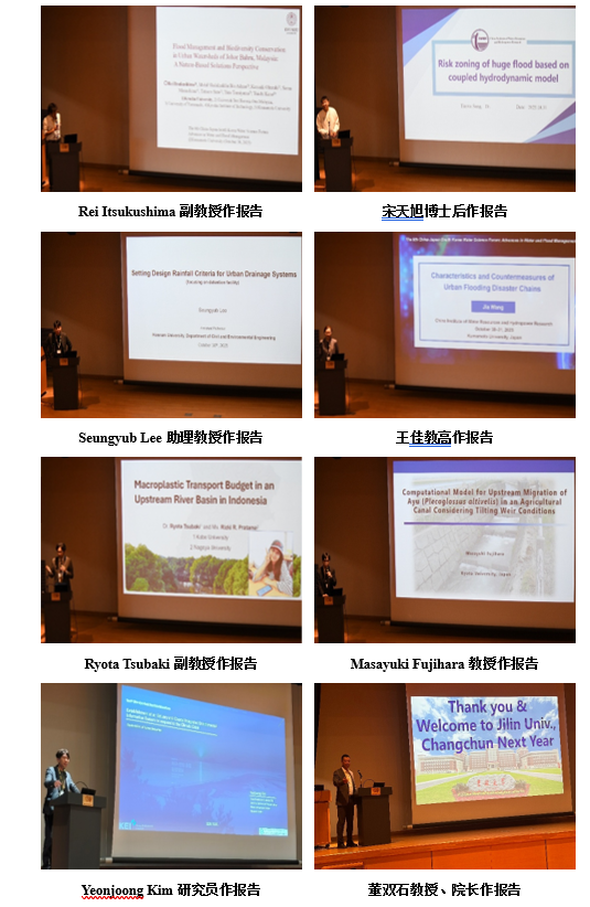 分论坛环节由来自中国吉林大学、清华大学、南方科技大学、中国水利水电科学研究院、西安理工大学、长春工程学院,日本熊本大学、京都大学、九州大学、神户大学,以及韩国中部大学、庆北大学、汉南大学、韩国环境研究院等中日韩三国多所知名高校与科研机构的专家学者,围绕湖泊生态水动力学、流域模拟与城市洪水模拟、基于深度学习的水文气象预报、水净化催化剂等多个前沿议题,分享了最新研究成果。