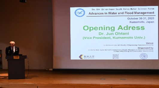 论坛开幕式由熊本大学Jun Ohtani副校长致欢迎辞;吉林大学冯右骖副教授代表论坛发起方,回顾并介绍了中日韩水科学论坛的发展历程;熊本大学Kei Ishida副教授介绍了日本文部科学省(MEXT,Ministry of Education, Culture, Sports, Science and Technology)支持的J-PEAKS项目。